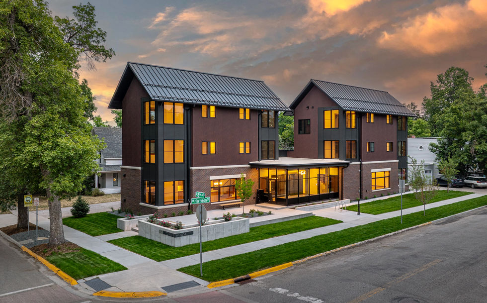 Built for student living The Corner house, located directly across the street from Montana State University combines the perfect location for students to live with the comforts of home. The Corner House has private rooms with en-suite bathrooms, custom gear lockers with the Bridger Ridgeline cut into the panels and dedicated interior and exterior study and social spaces. There is also a bike repair stand for all to use.